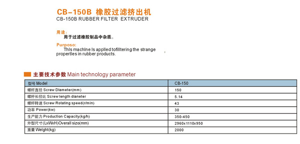 產(chǎn)品名稱:CB-150B橡膠過濾擠出機
