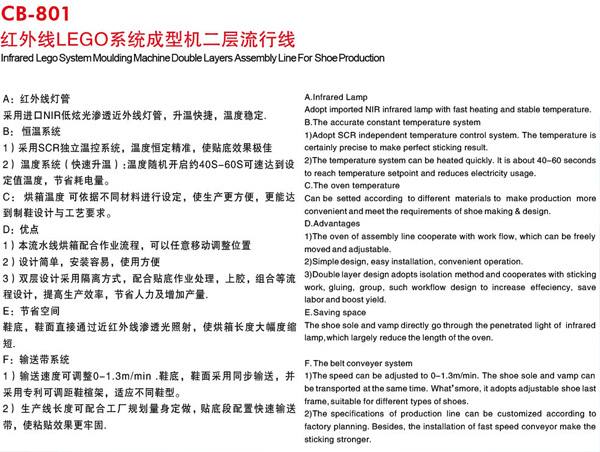產(chǎn)品名稱:CB-801紅外線LEGO系統(tǒng)成型機二層流行線