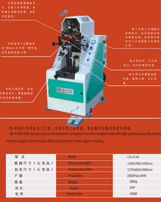 產品名稱:CB-8188新型后踵結幫機