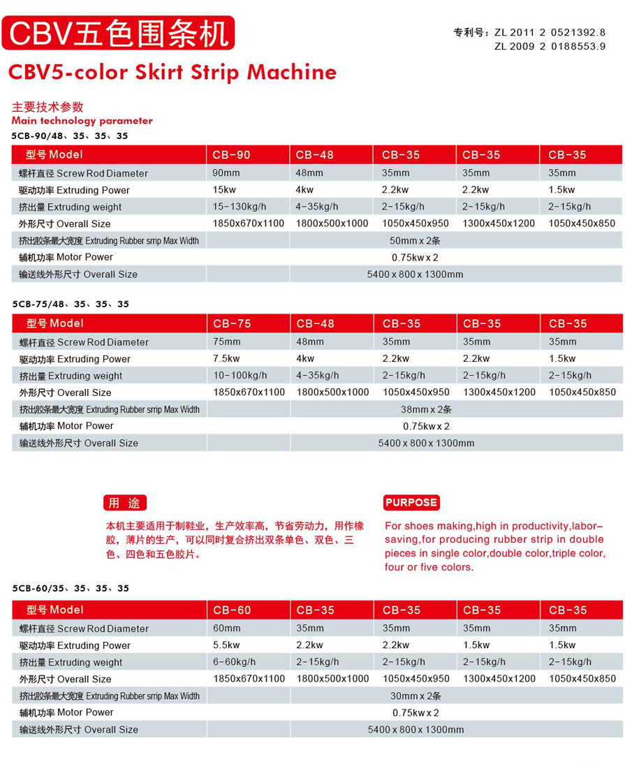 五色圍條機(jī)主要適用于制鞋業(yè).生產(chǎn)效率高.節(jié)省勞動(dòng)力,用作橡膠、薄片的生產(chǎn).可以同時(shí)復(fù)合擠出雙條單色、雙色、三色、四色和五色膠片。